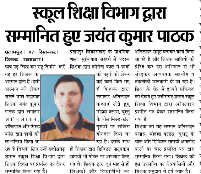शिक्षक का नाम- जयन्त कुमार पाठक